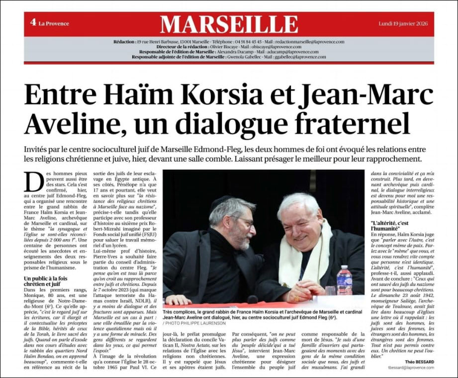 Cette association présidée par Patrick Lagarde regroupe en effet en son sein les communautés catholique, protestante, juive et adventiste de la ville et son dîner annuel avait lieu pour la 3ème année consécutive au sein du centre communautaire Jérôme Cahen en présence notamment du Rabbin de la communauté Michaël Azoulay, du Président Philippe Besnainou, de Sylvain Reingewirtz et de Lise Leszczynski. Cet évènement avait été initié en 2023 pour marquer la solidarité des membres de l'association avec la communauté juive suite au pogrom du 7-Octobre.